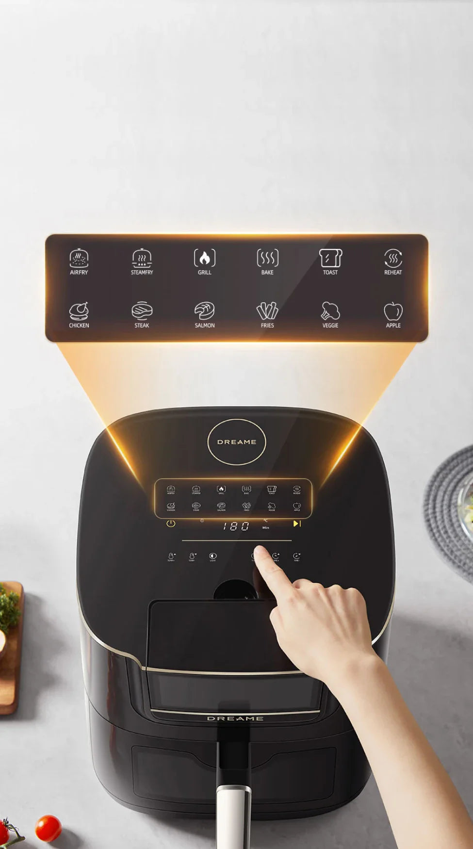 85 % vähemmän öljyä: *verrattuna mikroaaltouunissa kypsentämiseen