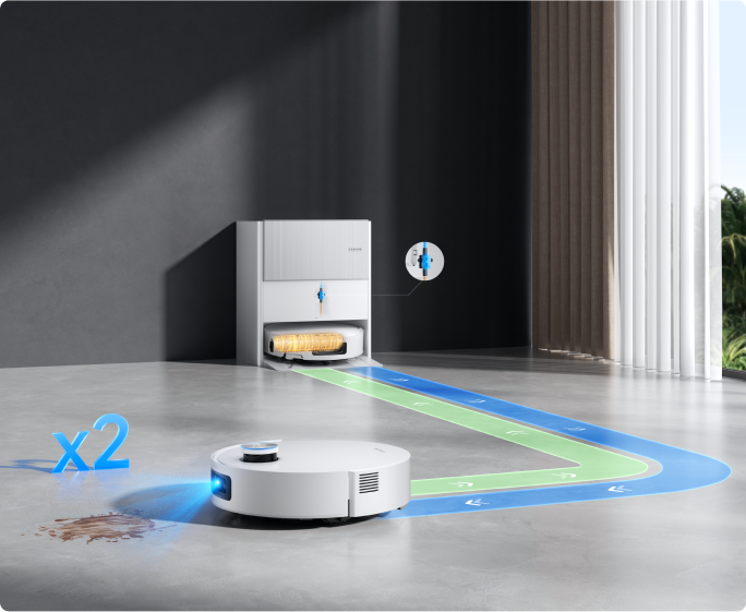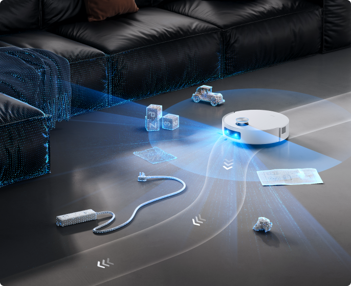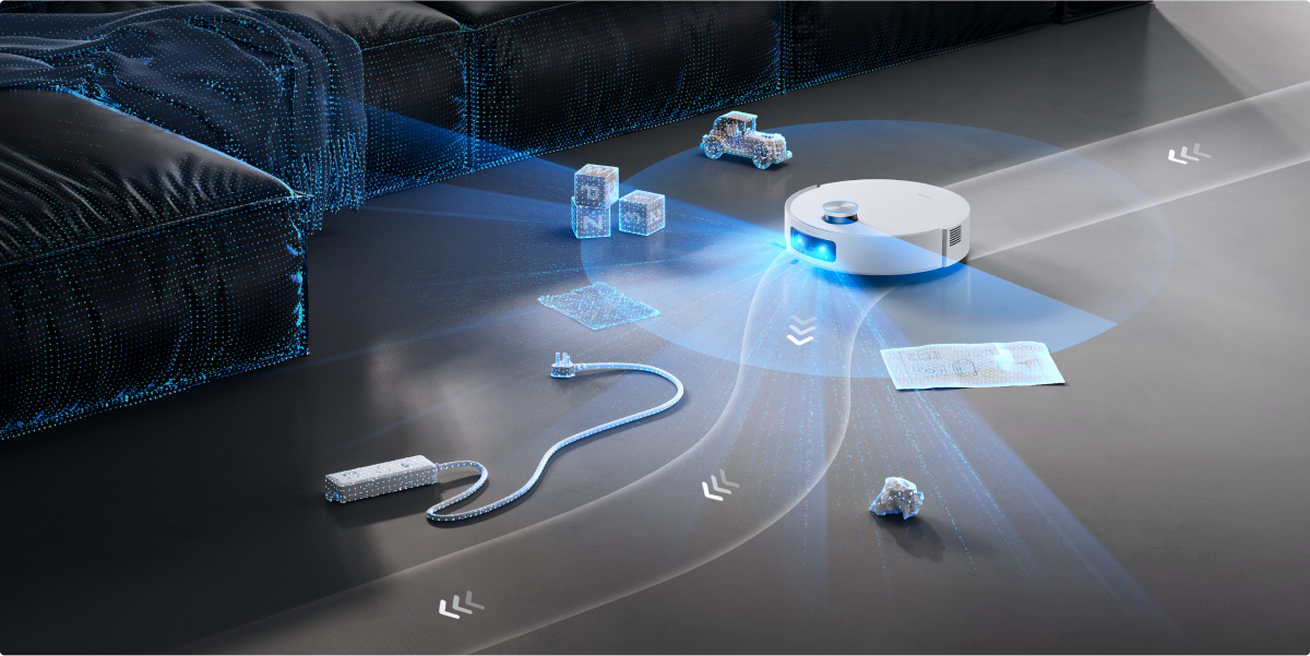 Kaksi HD-tekoälykameraa tallentavat syvyystietoja ja muodostavat 3D-yksityiskohtia samankaltaisella tavalla kuin ihmissilmät havainnoivat ympäristöä. Yli 240* erilaisen esteen kiertäminen onnistuu helposti jopa 1 mm:n* tarkkuudella.