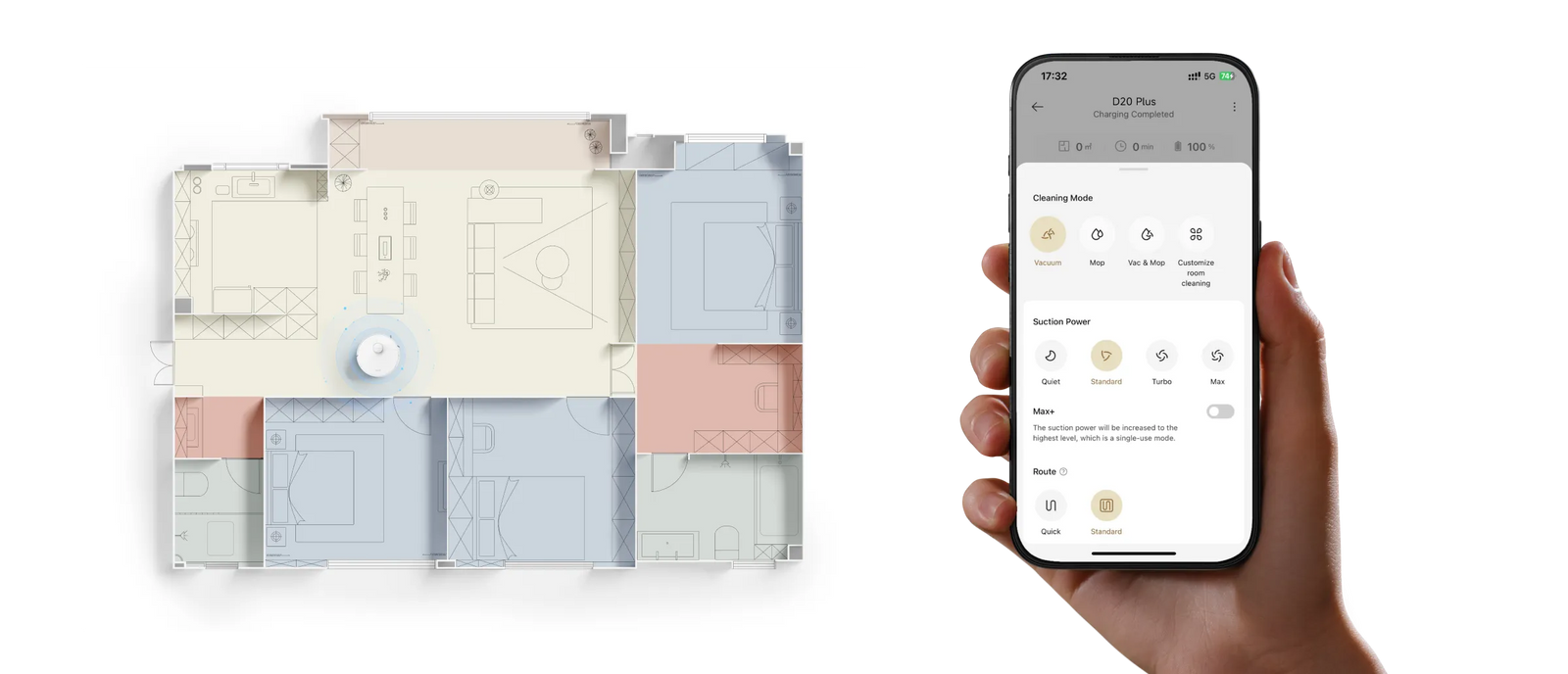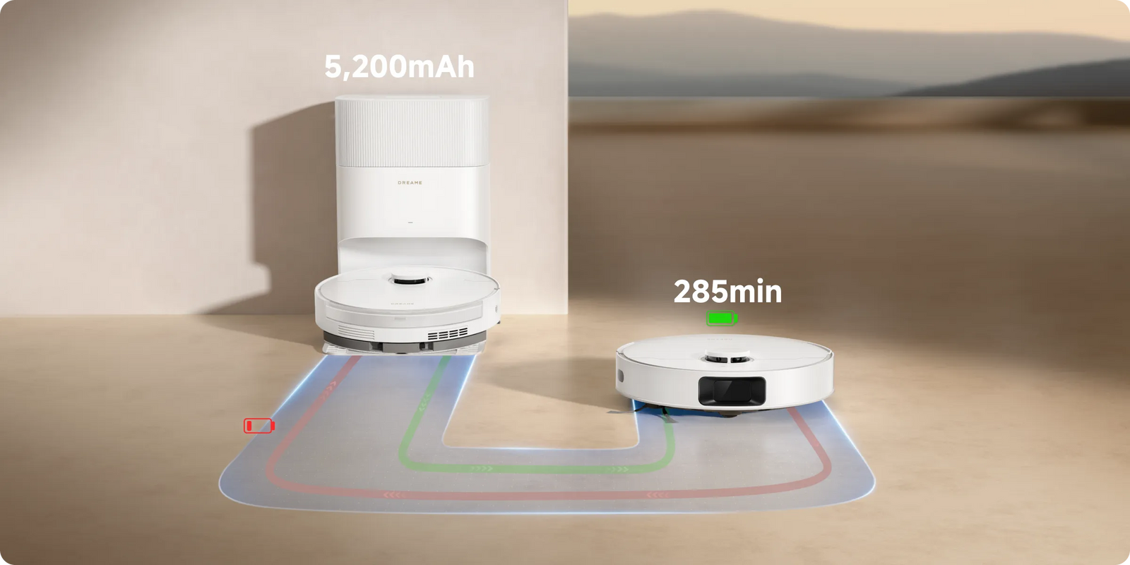 * 285 min: Perustuu oman laboratoriomme tietoihin, kun imuri on imurointi- ja moppaustilassa. Todellinen suorituskyky voi vaihdella.