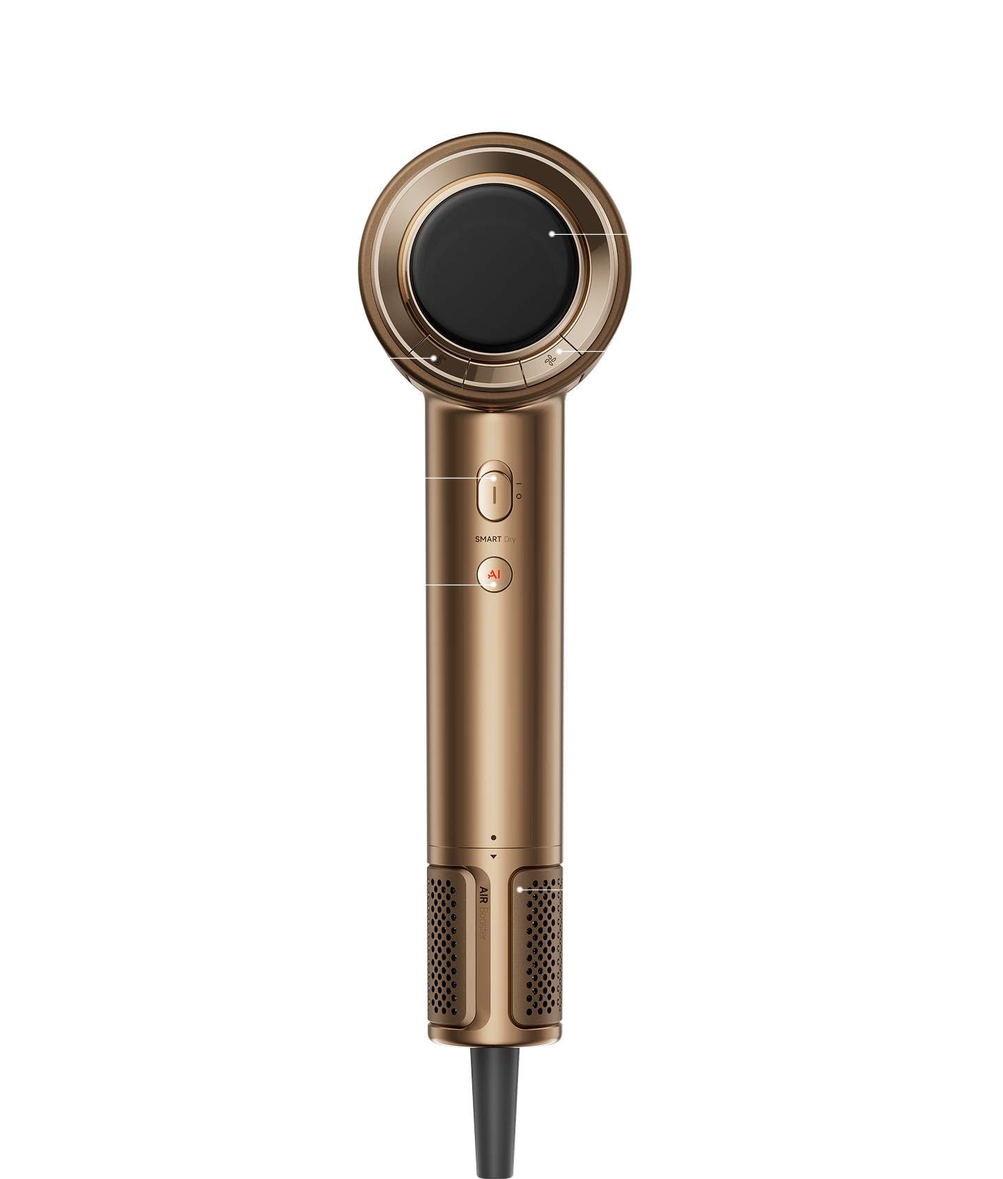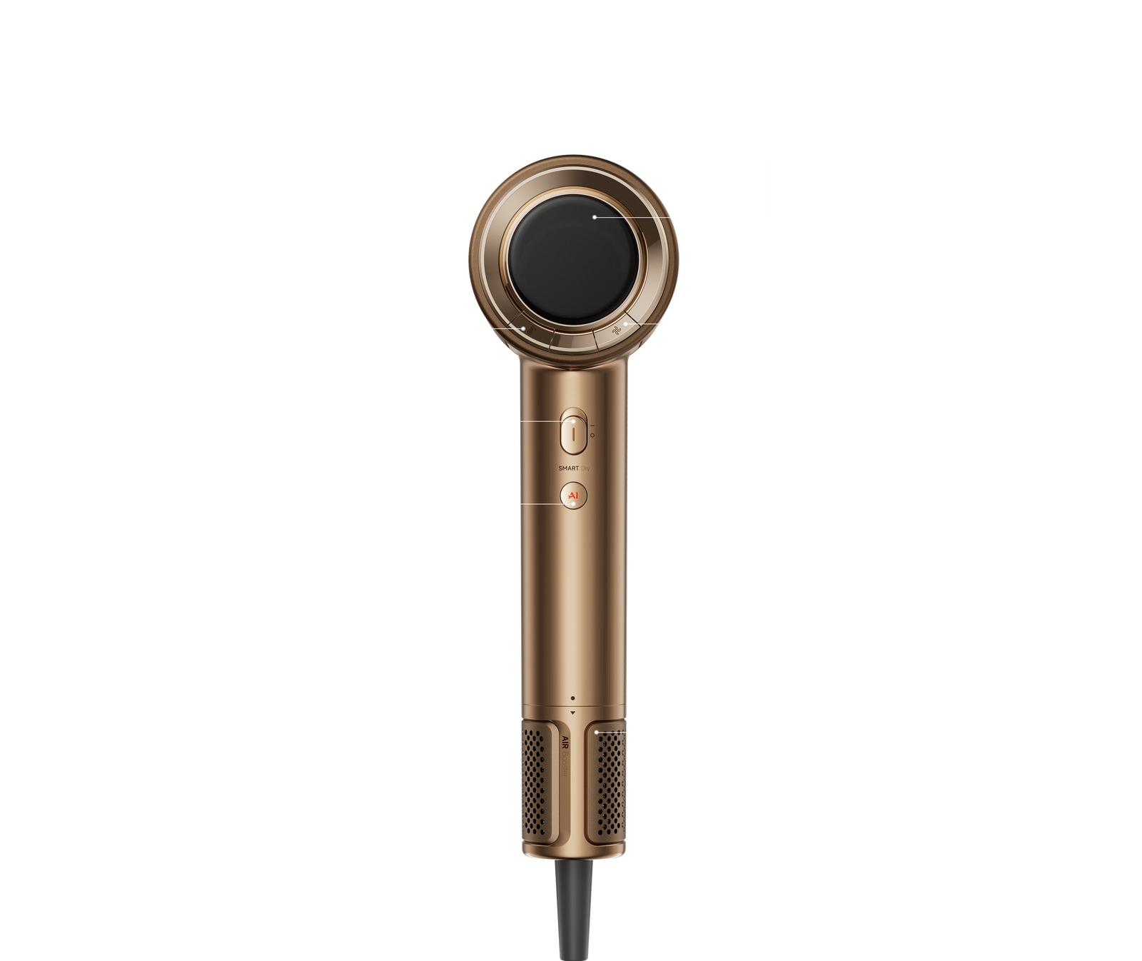 Kiinteä platinalähde tuottaa suuren määrän negatiivisia ioneja kuivauksen aikana, mikä auttaa vähentämään staattista sähköä, silottamaan hiuksia ja parantamaan hiusten kiiltoa.