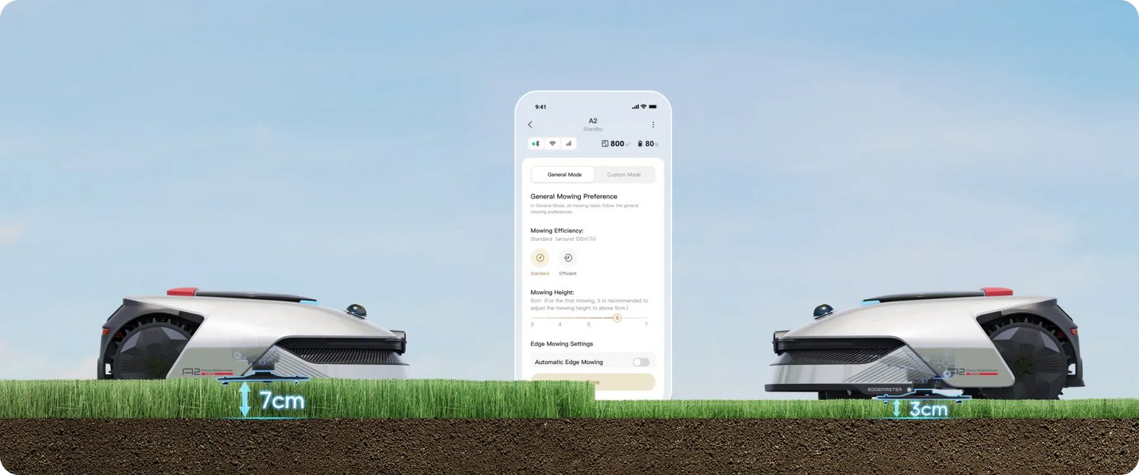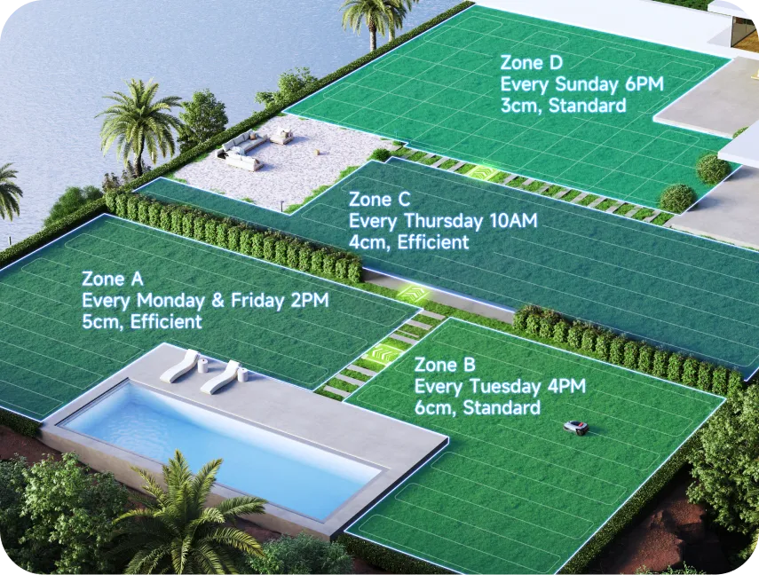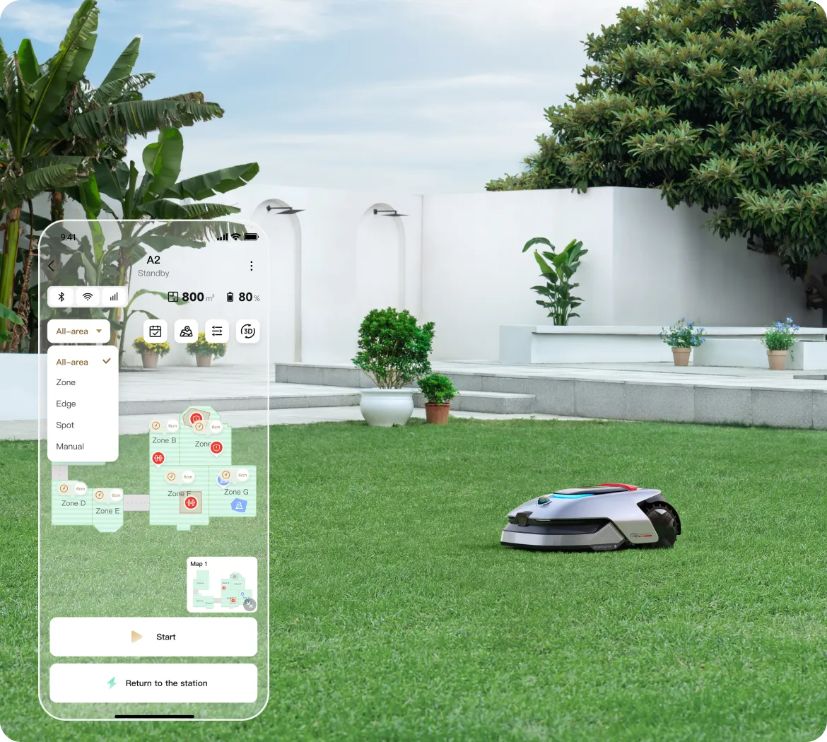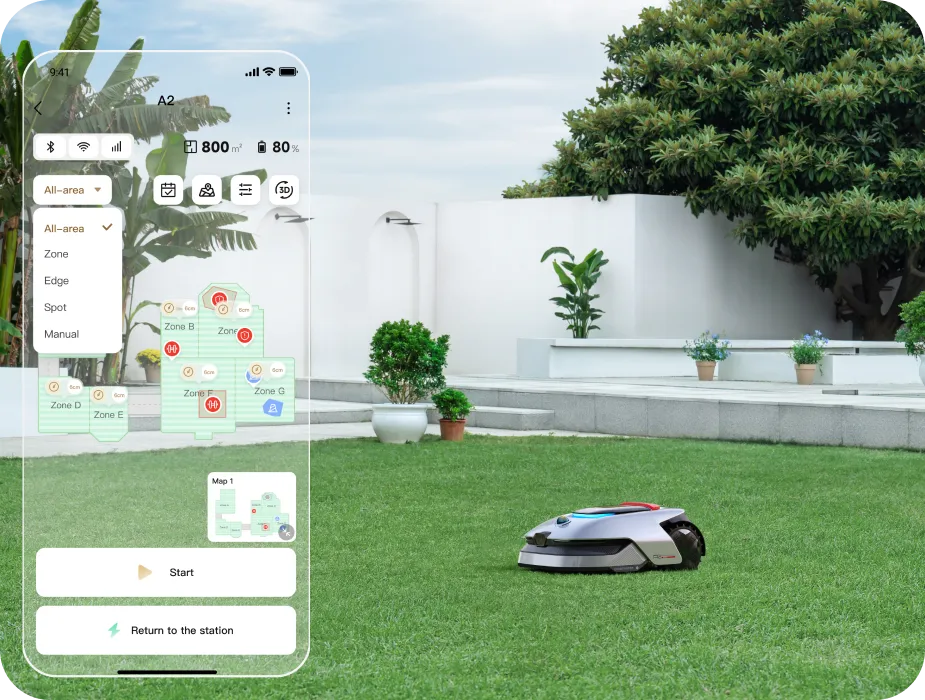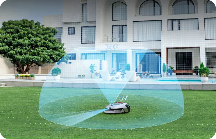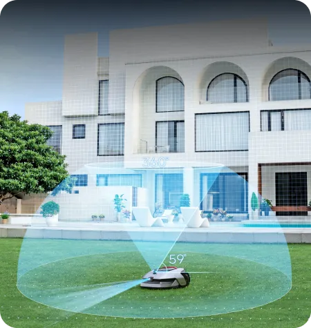 *360° × 59°:n laajakulma: A2-robottiruohonleikkurin LiDAR-anturi mahdollistaa 360 asteen vaakasuoran näkymän ja 59 asteen pystysuoran näkymän. Perustuu oman laboratoriomme tietoihin.