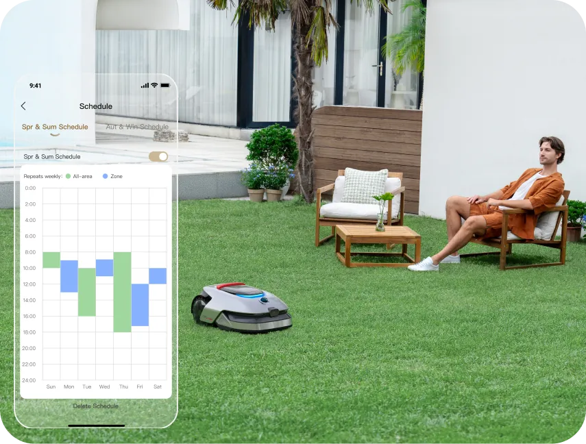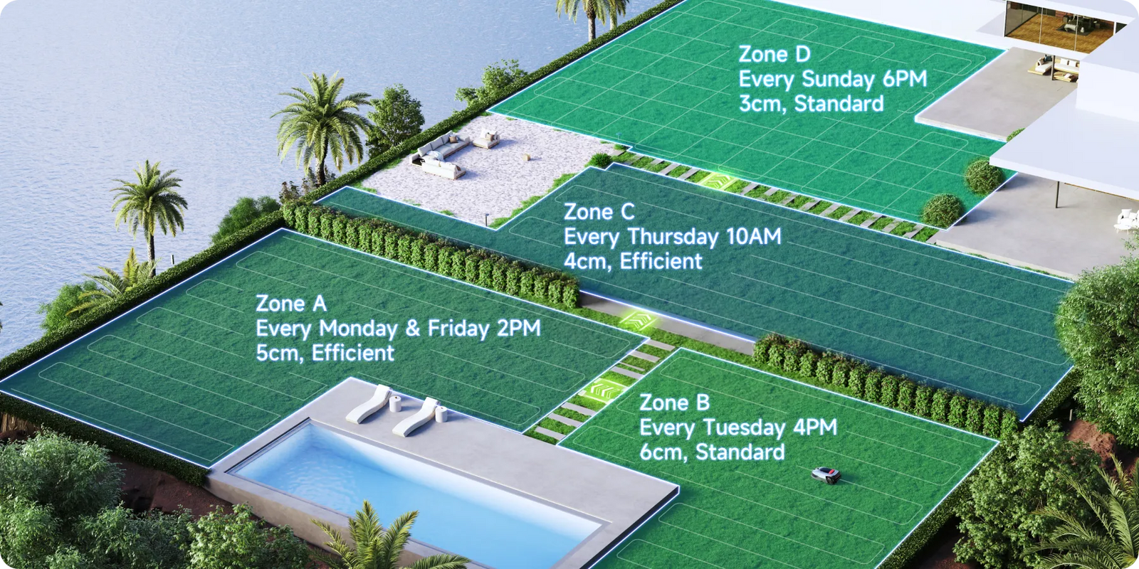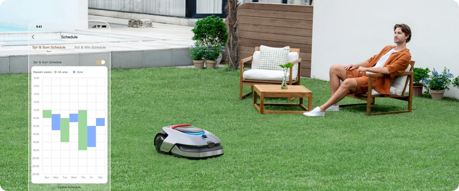 * Alkuperäinen aikataulu luodaan automaattisesti, kun kartta on luotu. Sitten voit helposti mukauttaa ja muokata suunnitelmaa halusi mukaan. Kaksoisaikatauluominaisuus koskee vain Koko alue- / Alueen leikkuu -tiloja.