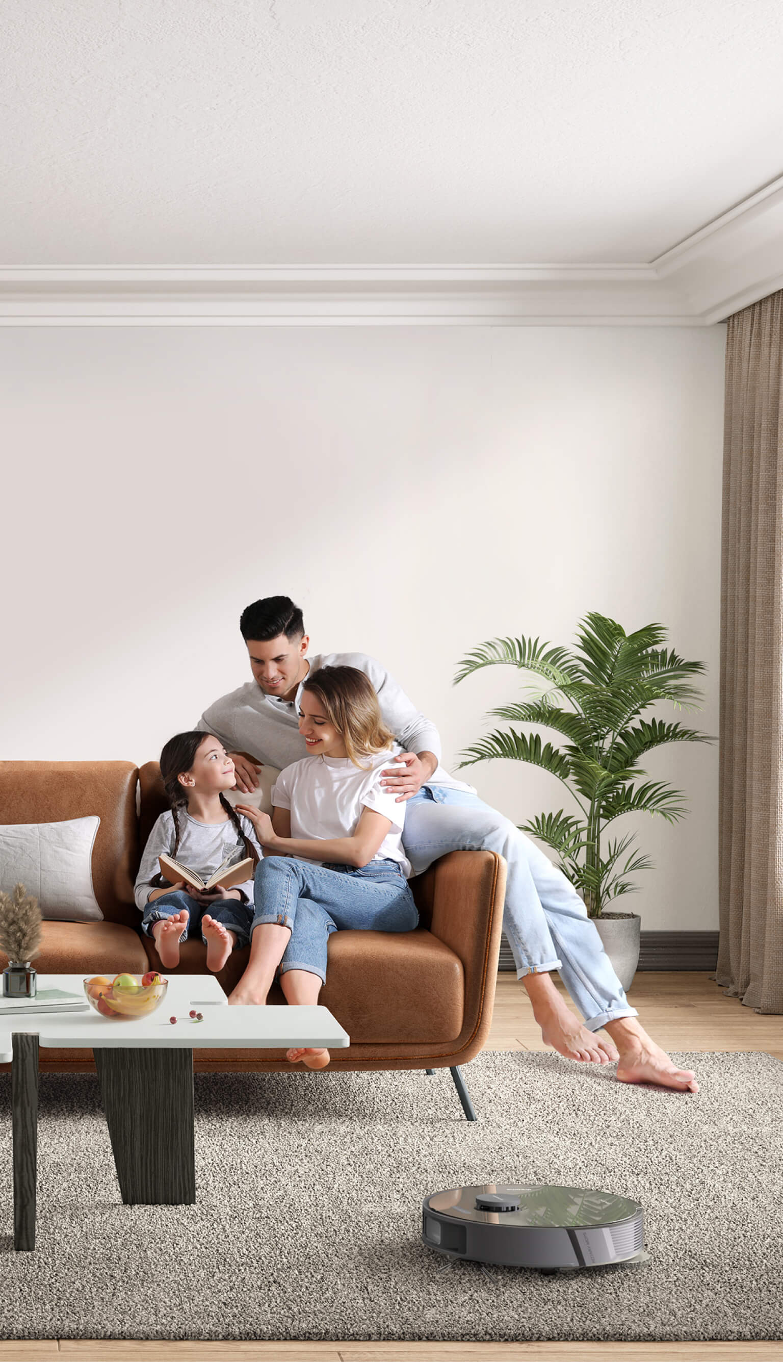 Tehokas imurointi, perusteellinen moppaus ja tilaa säästävä minimalistinen telakointiasema siivoustehosta tinkimättä. Neljä imutasoa ja kolme veden käyttötilaa* mahdollistavat siivouksen mukauttamisen eri lattiatyyppien mukaan, olipa kyseessä esimerkiksi puu- tai laattalattia tai matto.