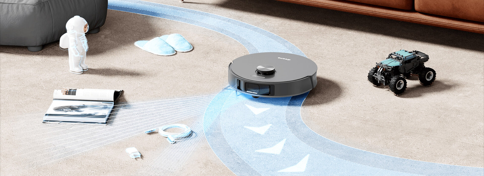 Tunnistaa matot tarkasti, nostaa mopit automaattisesti ja tehostaa imua, jotta häiritsevä lika, pöly ja roskat voidaan poistaa perusteellisesti ja helposti. Ultraäänitekniikka tunnistaa matot tarkasti. L10s Pro nostaa moppityynyjä jopa 7 mm*, jolloin matot pysyvät kuivina eikä imuri vedä likaisia moppeja puhtailla lattiapinnoilla tukiasemaan palatessaan.