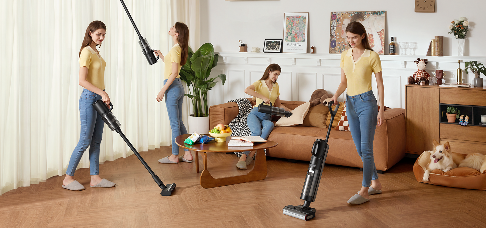 Siivoa tehokkaasti kaikki kotisi kovat lattiapinnat. Laitteen käyttöaika on jopa 35 minuuttia* ja se on varustettu tilavilla vesisäiliöillä. Siivoa esimerkiksi mattoja ja huonekaluja yhtäjaksoisesti 60 minuuttia, kun laitetta käytetään käsikäyttöisesti tai varrellisena imurina.