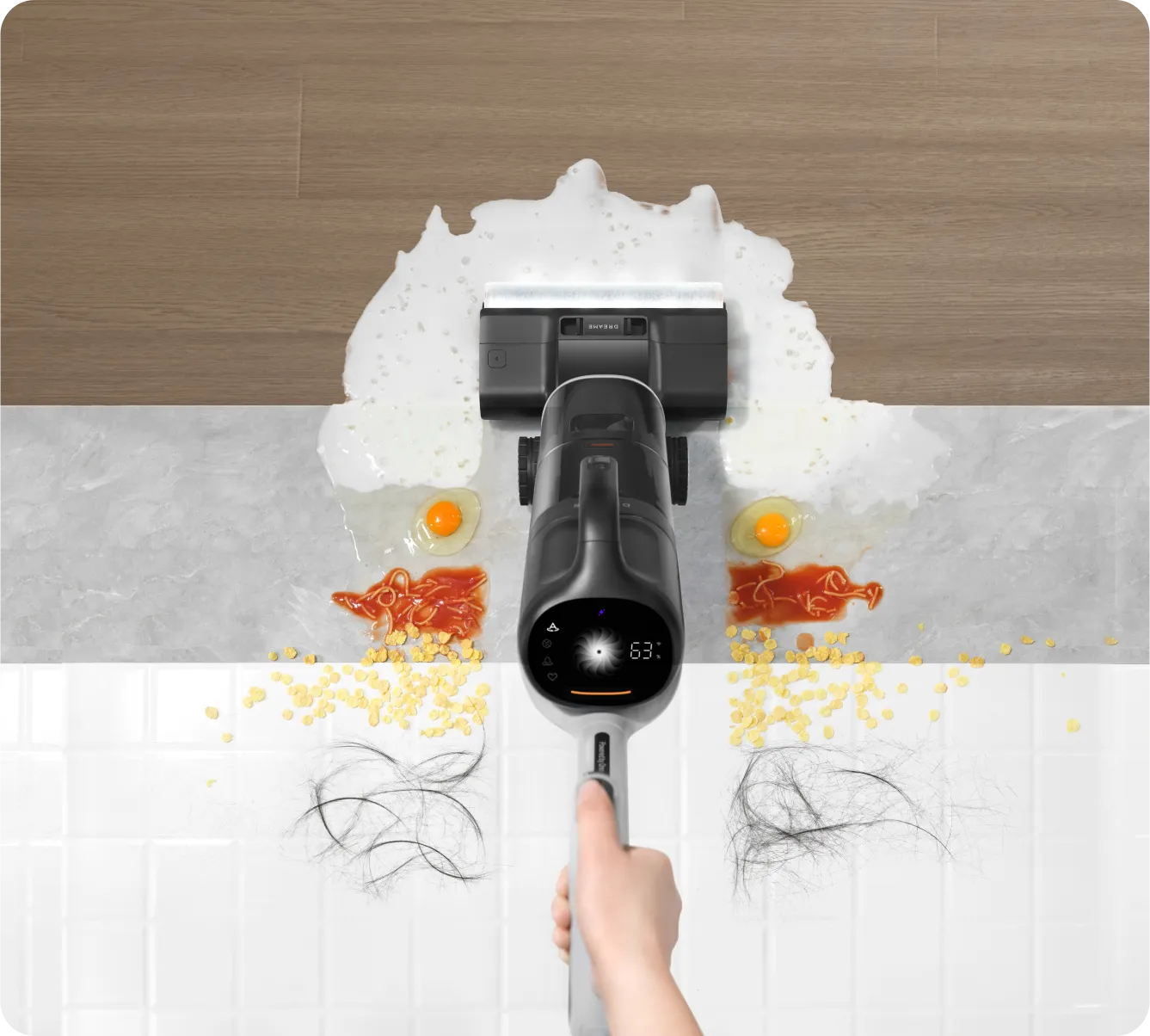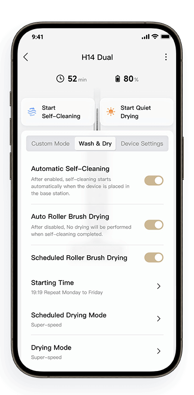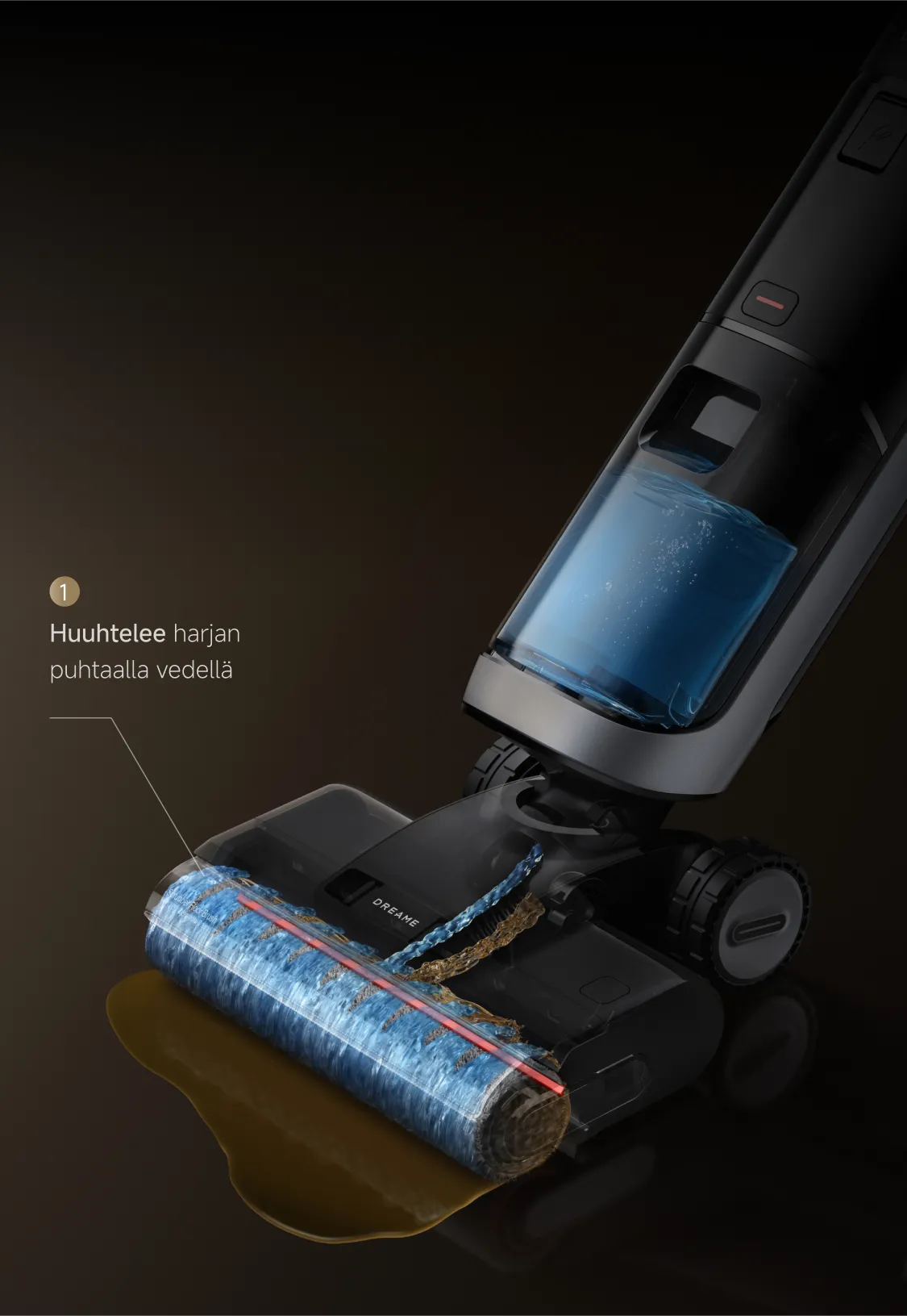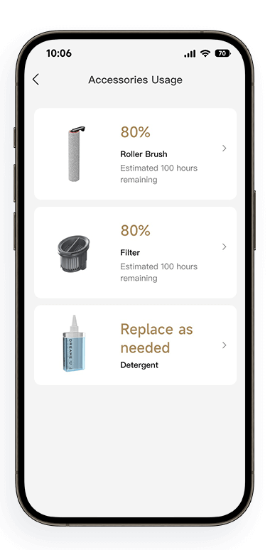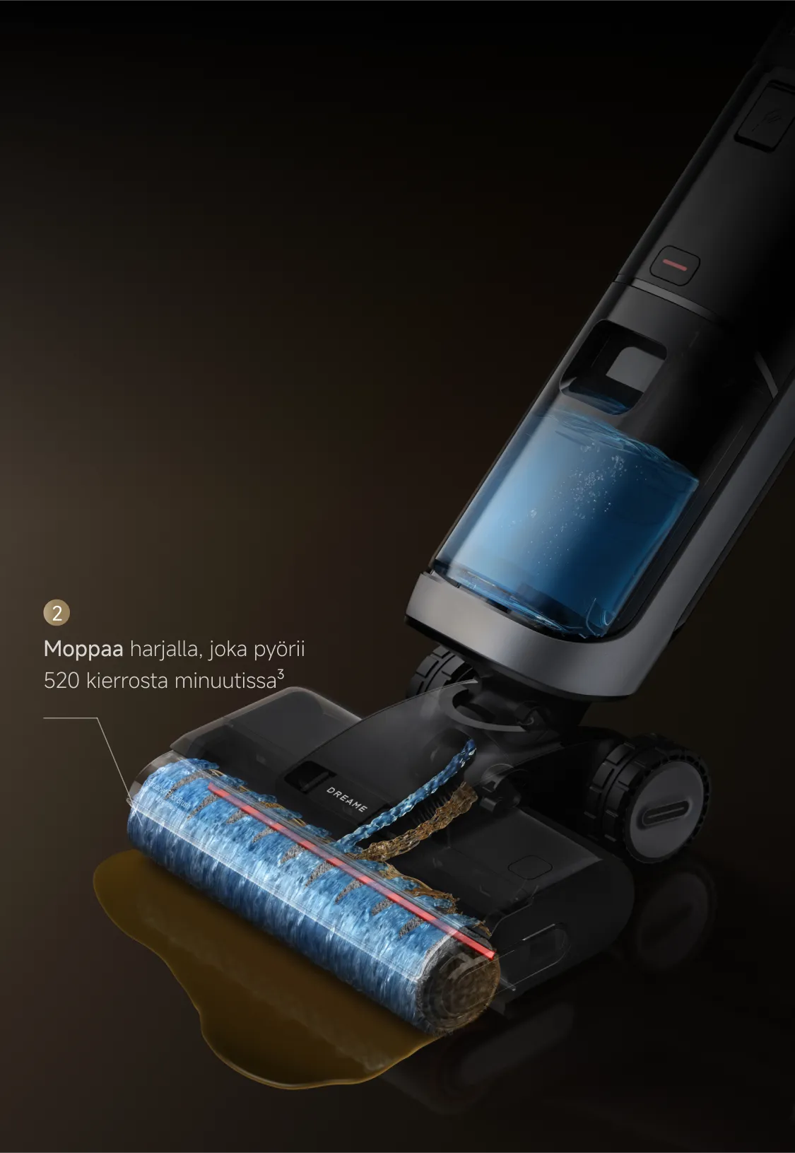 ⁶ Kuukauden siivoukset yhdellä täytöllä: Dreame Labin testien perusteella 120 ml puhdistusliuosta voi riittää 30 päiväksi (suhteen ollessa 1:200). Todellinen käyttöaika voi vaihdella.