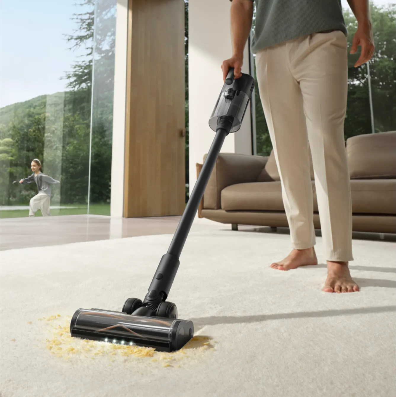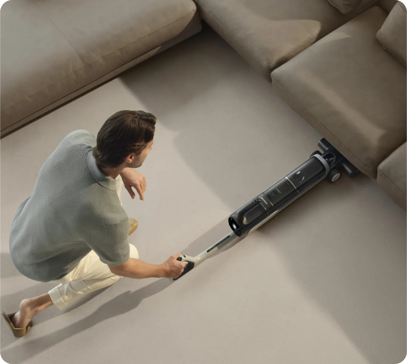 ¹ 180°, 14 cm, 9,8 cm: Imurin koko runko mahtuu 14 cm:n tilaan huonekalujen alle. Harjapää mahtuu jopa 9,8 cm:n tilaan huonekalujen alle. Kun imuri on vaaka-asennossa, moottorin kahva on 18 cm:n päässä lattiasta. Tieto perustuu oman laboratoriomme dataan.