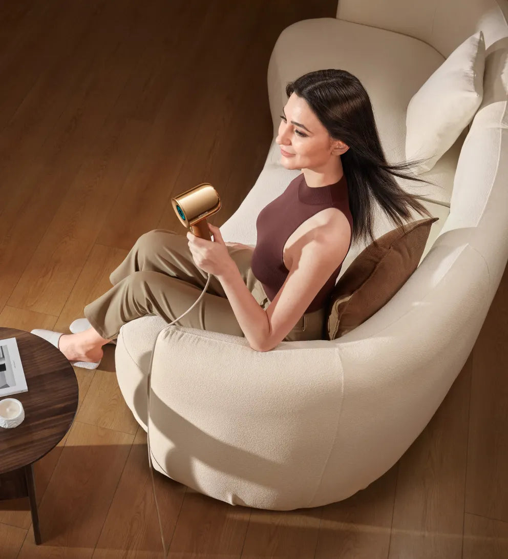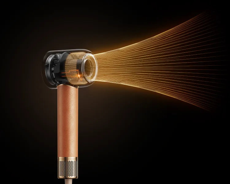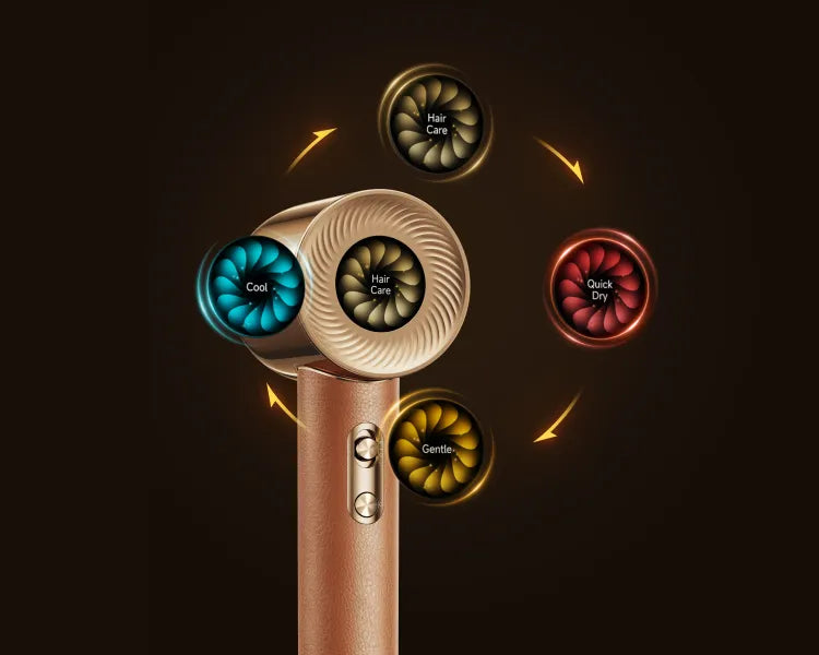 Hair Miracle- hiustenkuivaajan nopea moottori (130 000 r/min*) tarjoaa 70 m/s:n** puhallusnopeuden ja 55 m³/h:n* ilmatilavuuden tehokkaaseen kuivaukseen. Tehokas puhallus yltää hiusten juuriin asti, mikä haihduttaa kosteutta nopeasti ja kuivattaa olkapäille ulottuvat hiukset kolmessa minuutissa*.