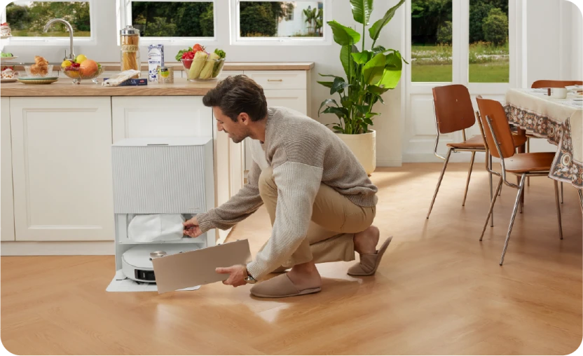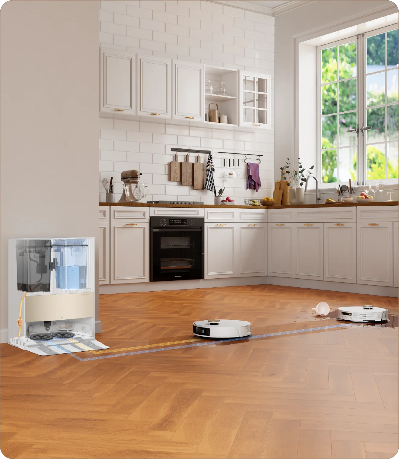 Automaattinen telakointiasema automatisoi päivittäisen siivouksen, niin voit kotiin palatessasi nauttia vastapuhdistetuista lattioista, jotka tuoksuvat ja tuntuvat ihanalta.Robotti pysyy erinomaisessa kunnossa automaattisella tyhjennyksellä, moppien puhdistuksella, vedentäytöllä, puhdistusliuoksen lisäyksellä ja monella muulla toiminnolla, jotka mahdollistavat lähes täydellisen handsfree-siivouksen.