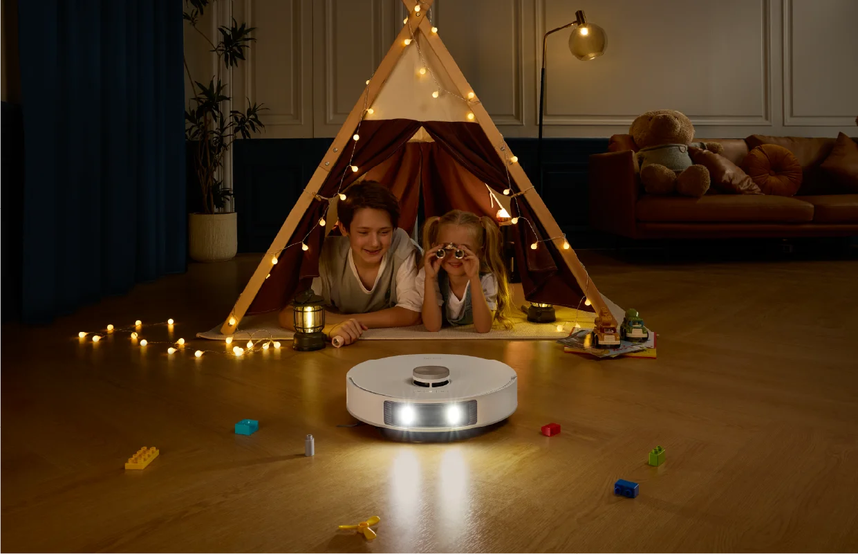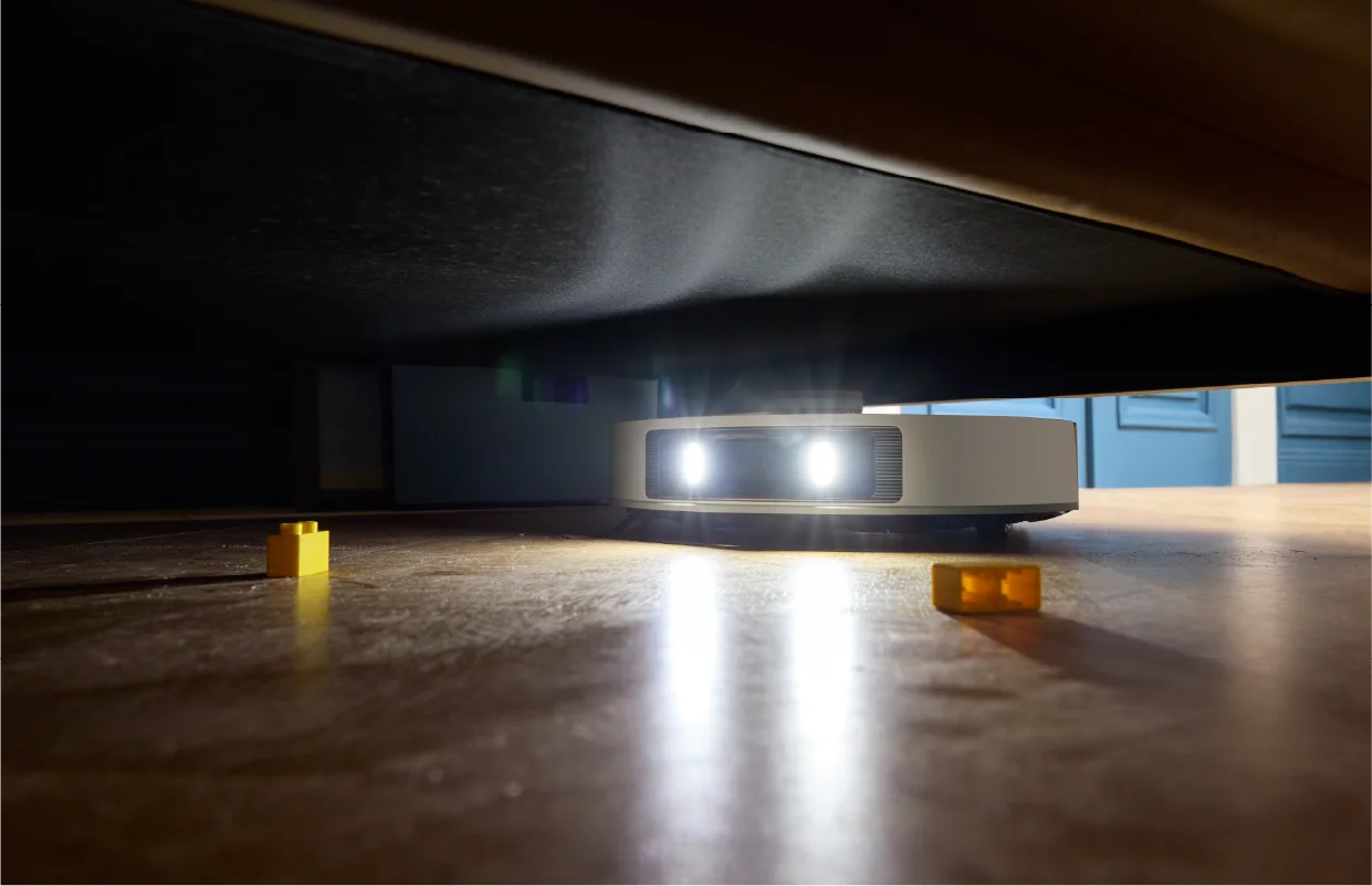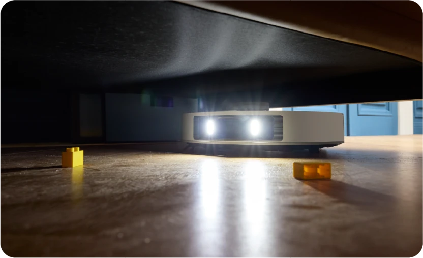 Sisäänrakennetun LED-valon avulla robotti tunnistaa jopa 55* erityyppistä esinettä ja suunnittelee, miten se puhdistaa niiden ympäriltä jopa hämärissä ja pimeissä tiloissa.