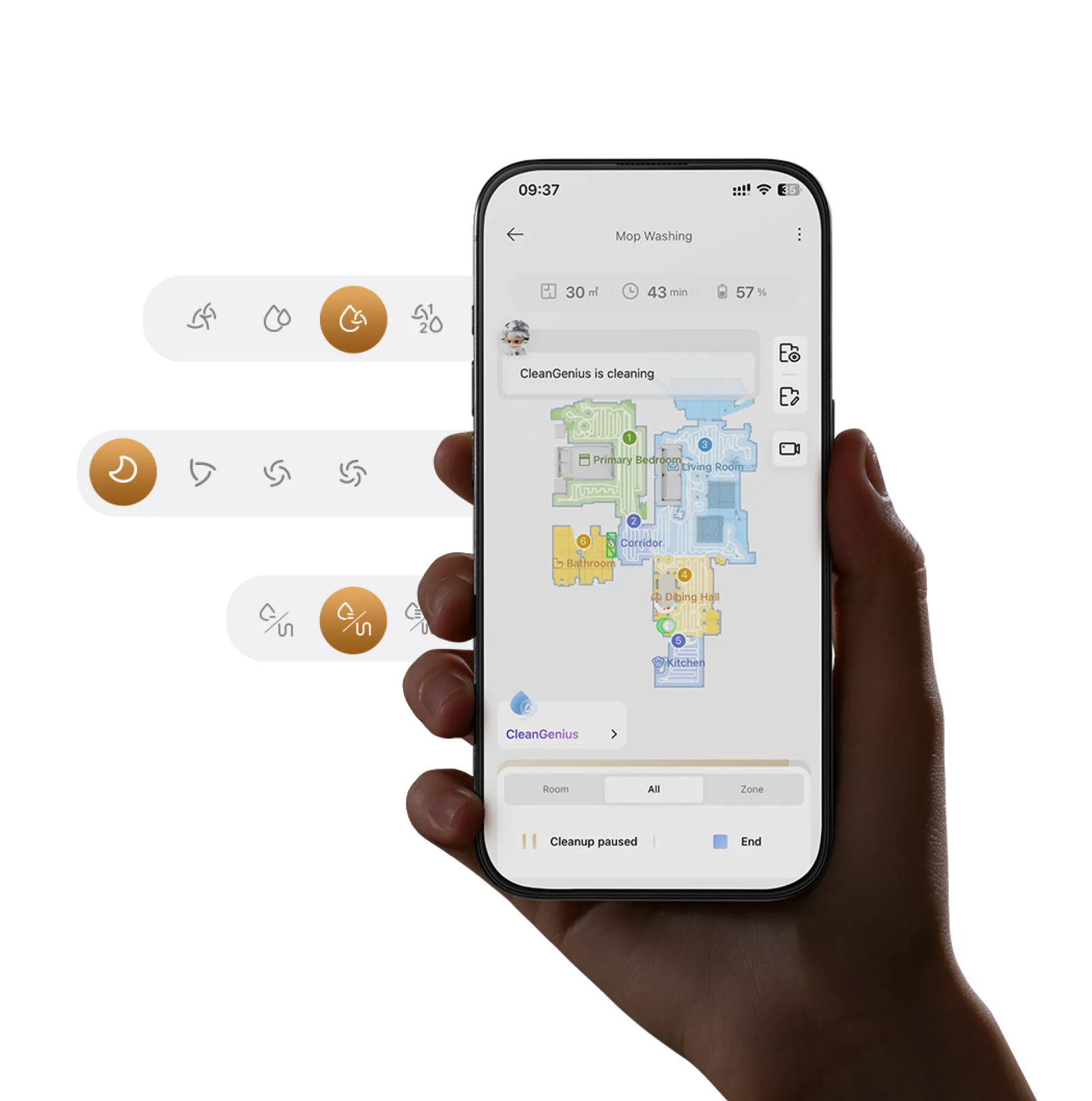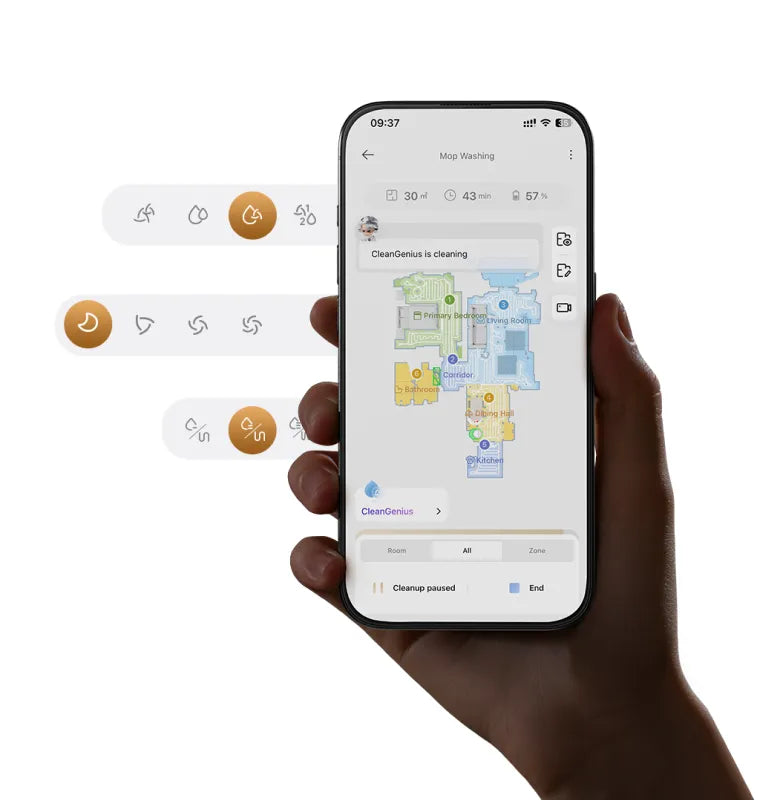 * Nesteiden havaitseminen: Voit asettaa sovelluksessa toimintatilaksi vain moppauksen tai välttämisen, kun nestetahroja, kuten lemmikin virtsaa, virvoitusjuomaa tai kahvia, havaitaan. Ominaisuus on edelleen OTA-vaiheessa. Pysy kuulolla.